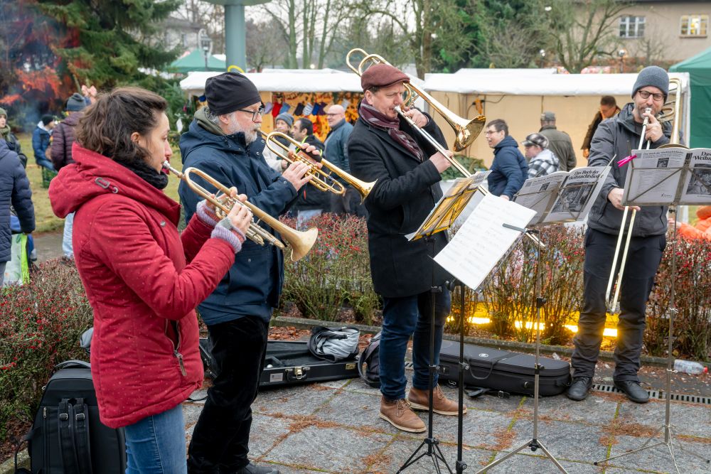Ein echtes Highlight boten die Künstler*innen: Die Feuershow von Feral Flame faszinierte mit eindrucksvollen Effekten, während der Chor der PankePerlen und der energiegeladene Auftritt der Karower Dachse den Adventsbasar zusätzlich zum Strahlen brachten.
