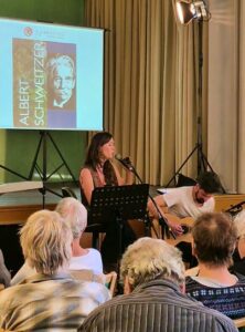 Die Rolle des ausgebildeten Schauspielers und Sprechers war Albert Schweitzer selbst, der von seinem Leben, Werk und Denken erzählte, gewürzt mit vielen kleinen Anekdoten. Bildprojektionen und musikalische Einspielungen begleiteten die Aufführung. Norbert Eilts verstand es, mit seiner lebendigen und anschaulichen Sprache die Zuschauer*innen zu fesseln und endete mit Albert Schweitzers zeitloser Ethik der „Ehrfurcht vor dem Leben“, die auch in der heutigen Zeit an Bedeutsamkeit nicht verloren habe.