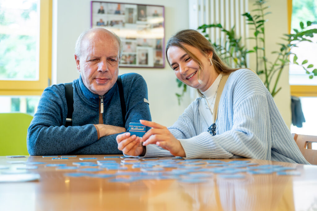 Wenn du einfühlsam zuhören kannst und gerne bei kleinen Aktivitäten begleitest, ist ein Besuchsdienst vielleicht genau das Richtige für dich. Unsere Bewohner*innen mit Pflegebedarf – mit und ohne Demenz – freuen sich sehr über Menschen, die ihnen etwa einmal pro Woche für 1–2 Stunden Zeit schenken.