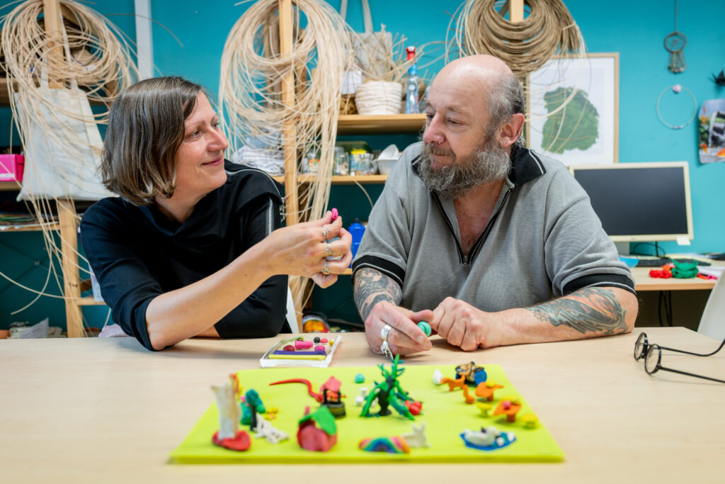 In dem Projekt „Stadtteil-Zentrum Inklusiv“ arbeiten wir daran, dass das Stadtteilzentrum ein Haus für alle Menschen wird. Mehr Menschen mit Lern-Schwierigkeiten sollen die Veranstaltungen, Kurse und Feste besuchen können. Unser Ziel? Teilhabe im Raum Pankow fördern.